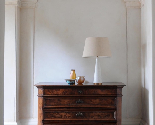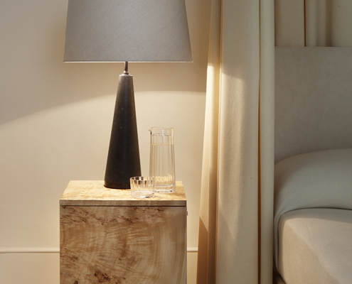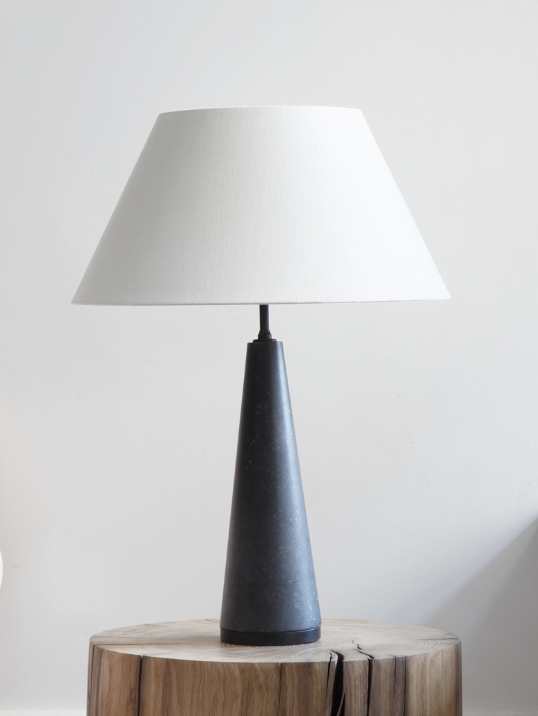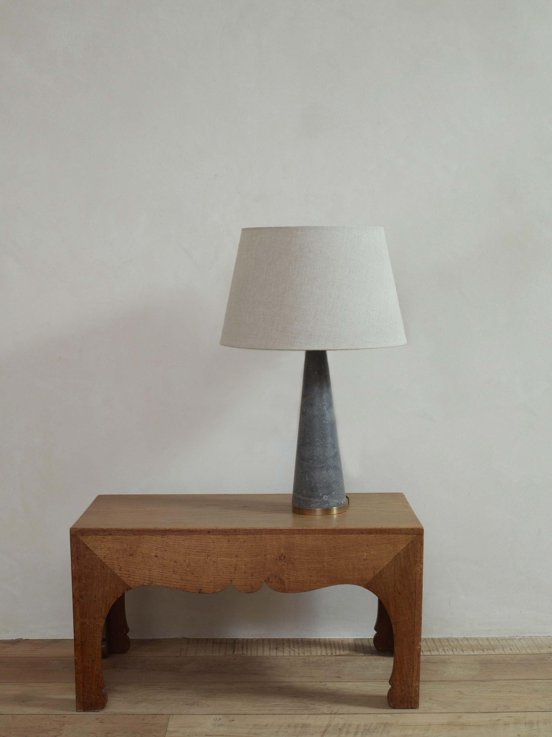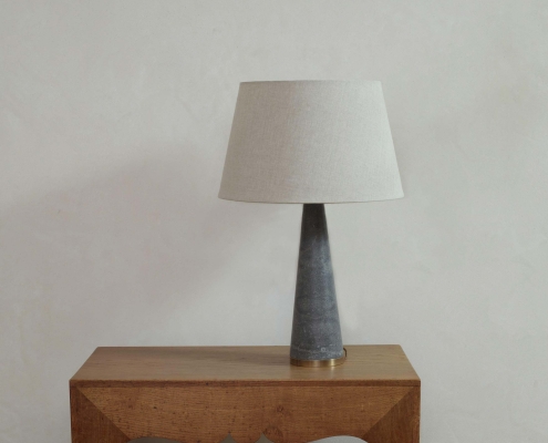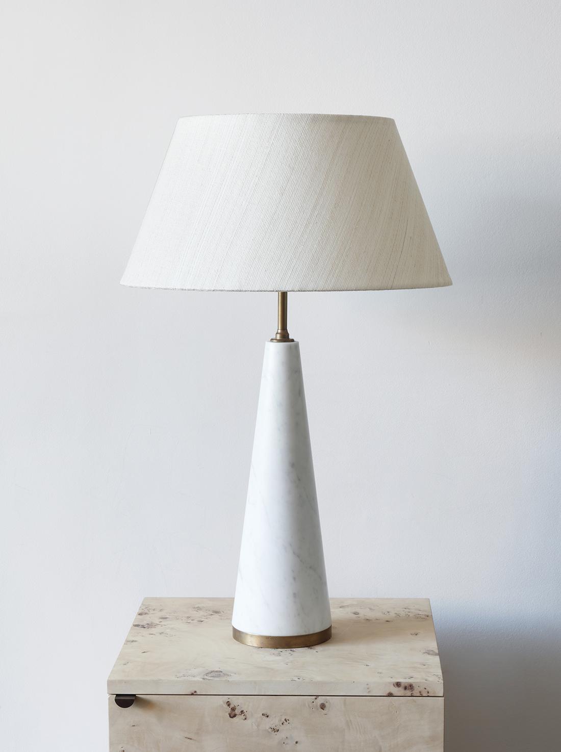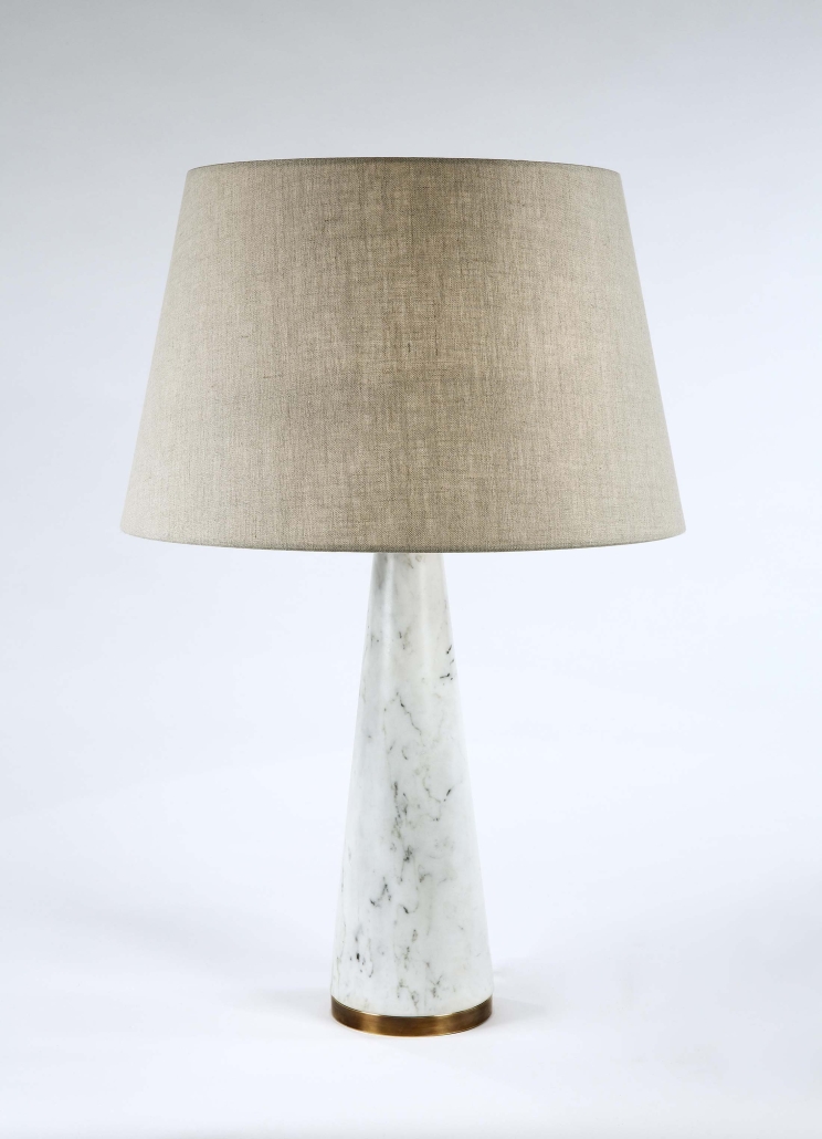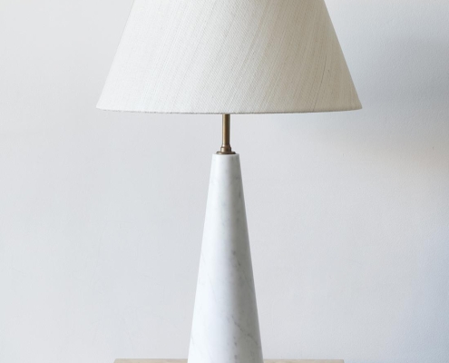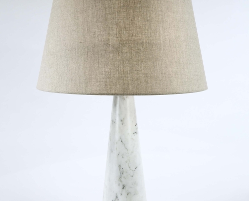 This lamp was inspired by the Marble Centre Table by Rose Uniacke, which is where it’s interesting conical shape derives from. Made from Tuscan Carrara marble, the base is lathed from a solid block of quarried stone. Each lamp then sits on a solid brass base. These lamps are also available in additional ‘limited edition’ marble variations and a range of metal finishes. Please enquire for stock availability. These are sold without the shade.