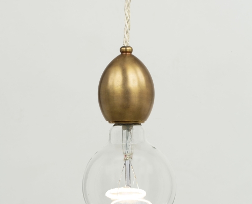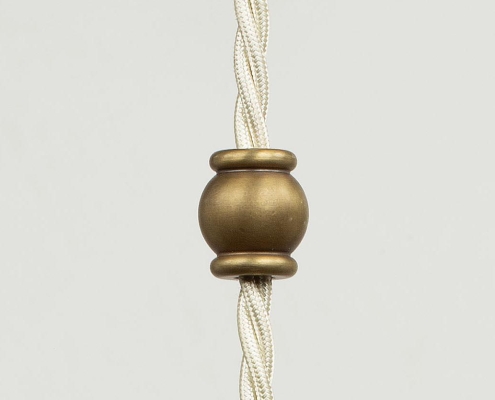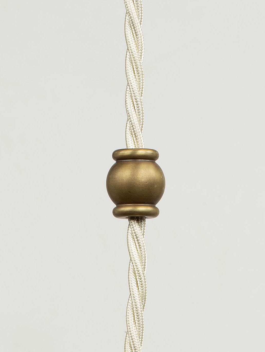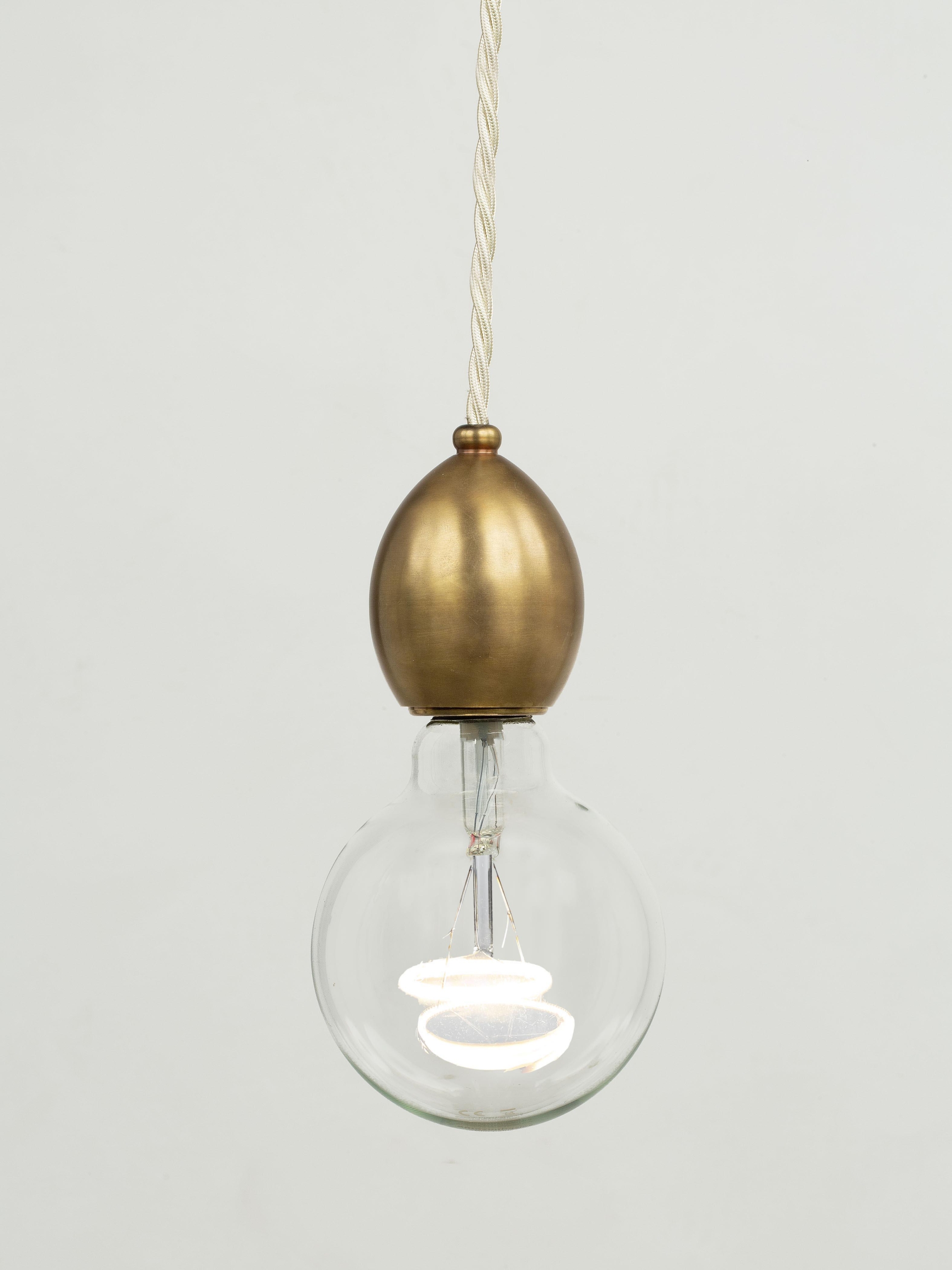 Originally designed as the internal component of the Leaded Lantern, the pendant also serves perfectly as a stand- alone decorative light. The lamp holder has been machined from solid brass and has an ornate mid-cable barrel weight. Brass finish, with an off-white braided cord.