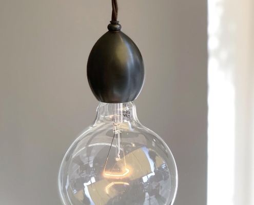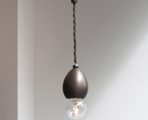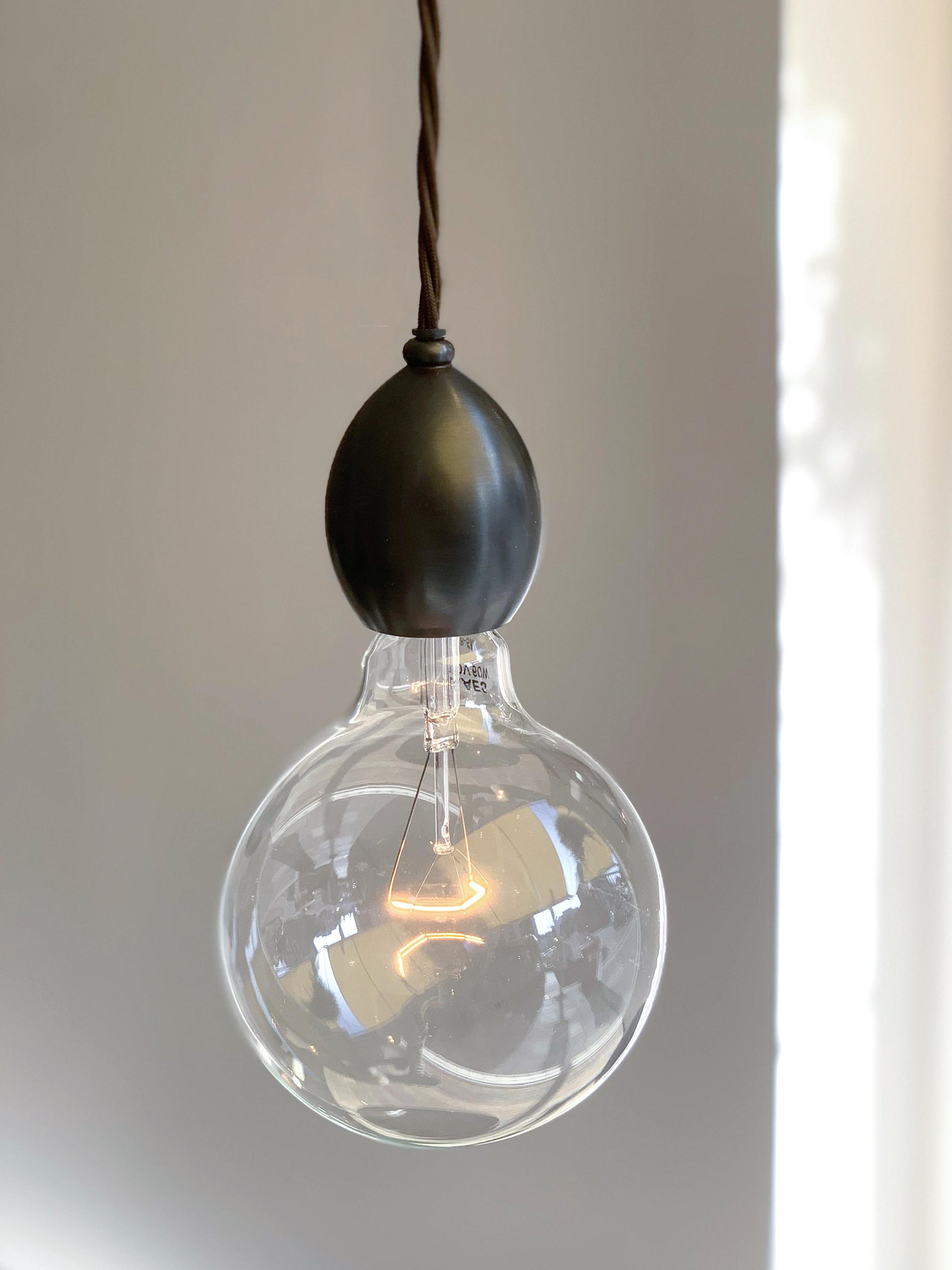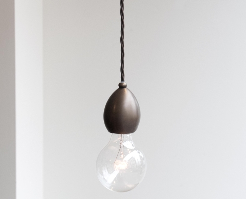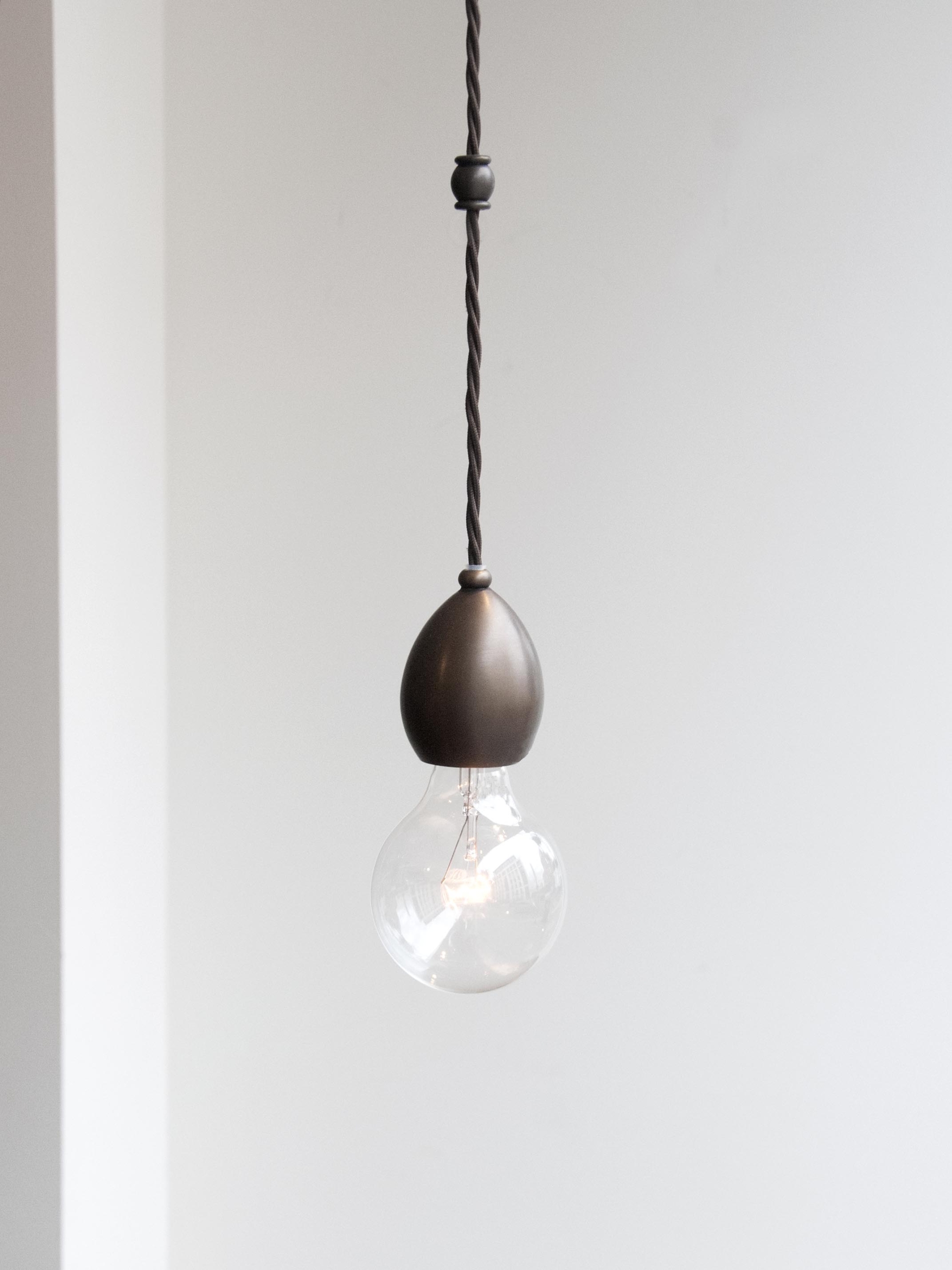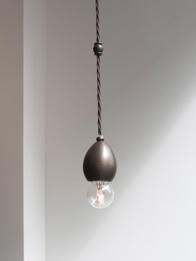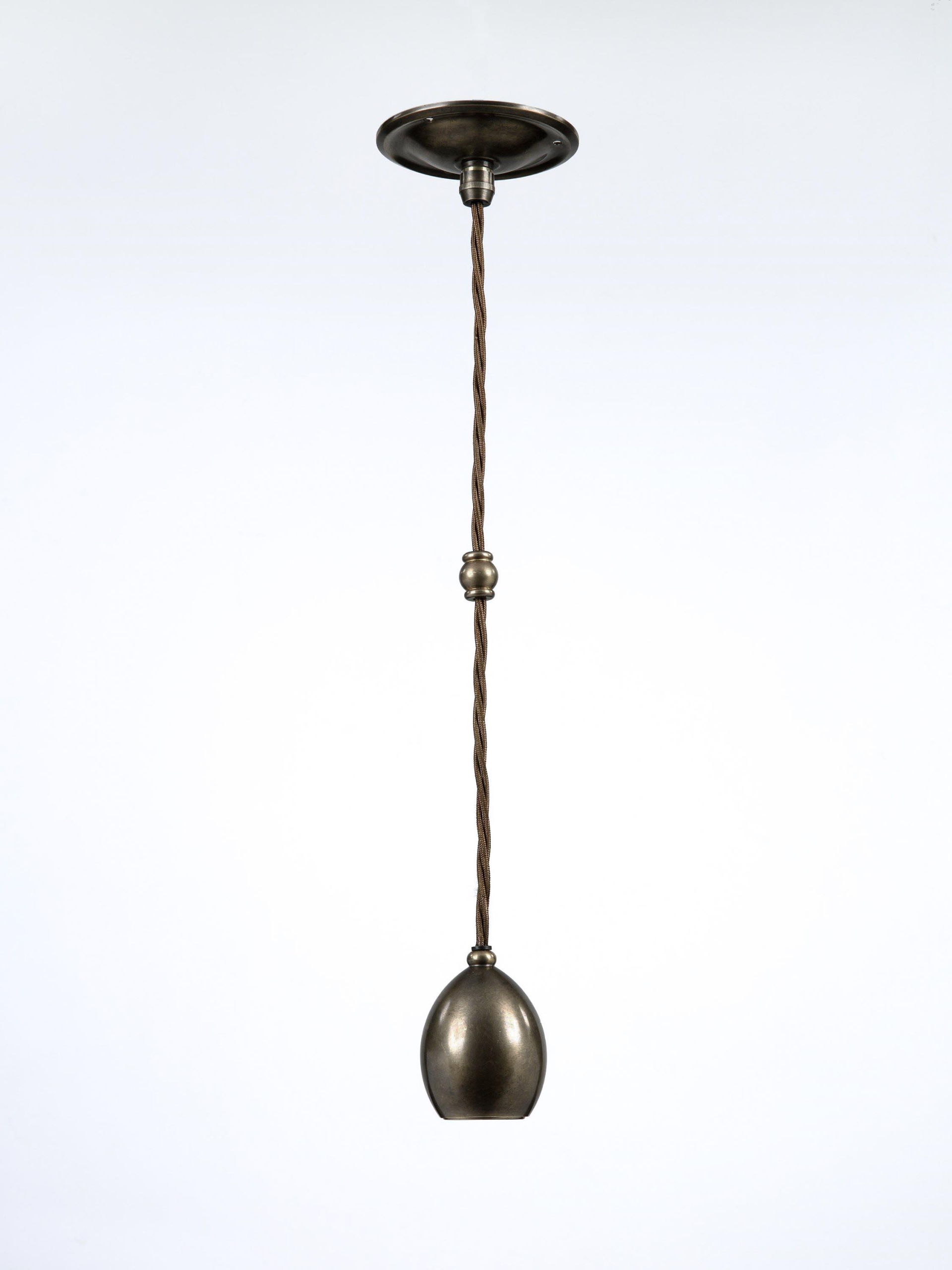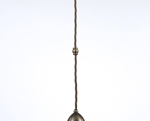 Originally designed as the internal component of the Leaded Lantern, the pendant also serves perfectly as a stand- alone decorative light. The lamp holder has been machined from solid brass and has an ornate mid-cable barrel weight. Dark Bronze finish, with a dark brown braided cord.
