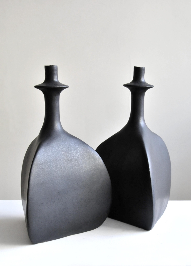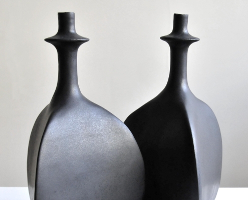 Stoneware (ceramic) vessel with a black matt enamelled finish